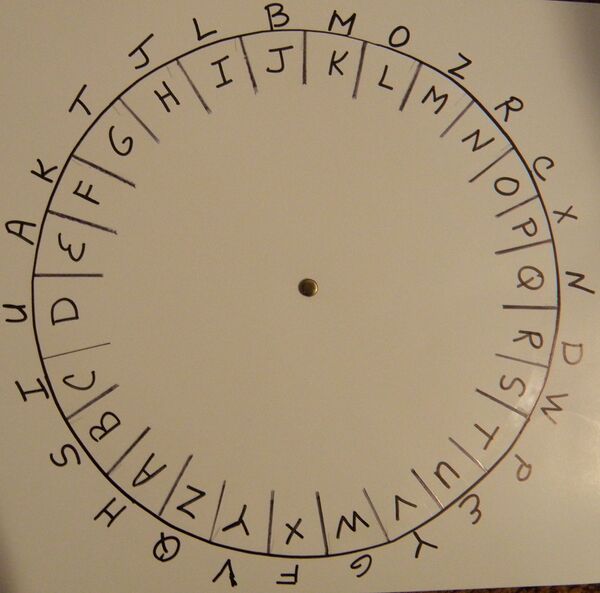 Одно из первых шифровальных устройств было придумано в XV веке и осуществляло замену шифром Цезаря. Его автором являлся итальянский архитектор Леоном Баттиста Альберти, который внёс ощутимый вклад в развитие шифров подстановки. Данное устройство состояло из двух медных дисков разного размера, скреплённых иглой. По краям каждого диска наносился алфавит. Оба диска могли вращаться независимо друг от друга, тем самым сопоставляя буквы открытого и шифрованного текста. Диск Альберти широко использовался пять столетий, в том числе во время Гражданской войны в США[33].