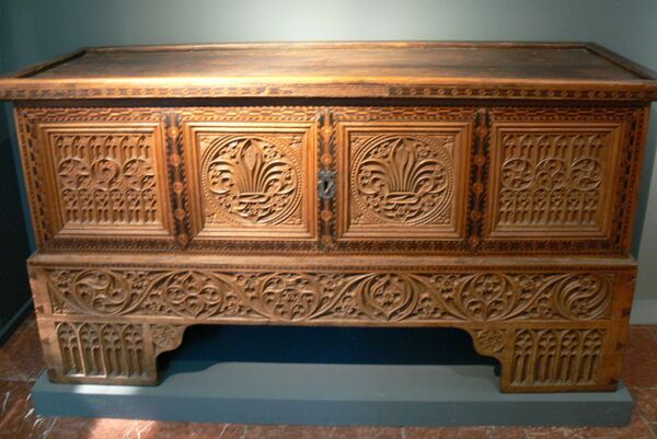 В парижском Музее декоративного искусства представлен грубоватый, похожий на сторожевую будку, экспонат. Табличка гласит, что это — редчайший дошедший до нас образец шкафа XIII века[9].