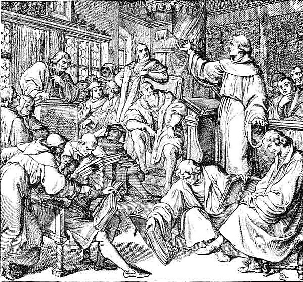 Летом 1519 года в Лейпциге состоялся знаменитый диспут между Мартином Лютером и профессором теологии Иоганном Экком, в ходе которого Лютер окончательно разорвал с папской церковью. Со вступительной речью на диспуте выступил учитель школы Святого Томаса Пётр Мозелланус. Протокол заседаний вёл тогдашний ректор школы Иоганн Граманн[11]. Кантор школы Георг Рау 27 июня для участников диспута устроил исполнение мессы.