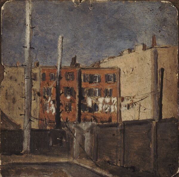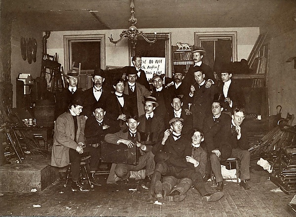В период с 1896 по 1904 года по инициативе Генри[15] художники перебрались в Нью-Йорк[16]. На севере города в испанском квартале в 1904 году Генри основал новую студию. Там к нему присоединились Гленн Колман, Джером Майерс и Джордж Беллоуз. Основными объектами зарисовок студийцев были улицы Бауэри с их типичными тогдашними представителями: беспризорниками, проститутками, уличными атлетами, боксёрами и иммигрантами[17].