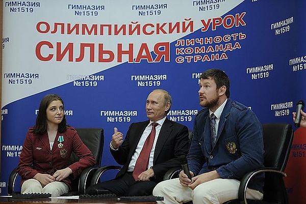 1 сентября 2012 года гимназию посетили президент России Владимир Путин и мэр Москвы Сергей Собянин. Они побывали на уроке истории для учащихся 10-го класса и уроке физкультуры для пятиклассников, который вместе со школьной учительницей провела гимнастка Анастасия Гришина. Кроме того, Владимир Путин и Сергей Собянин посетили урок «Сильная личность — сильная команда», который провели дзюдоист Александр Михайлин и гимнастка Алия Мустафина. Затем Владимир Путин провёл в стенах гимназии совещание, посвященное реализации проекта модернизации системы образования в регионах[3].