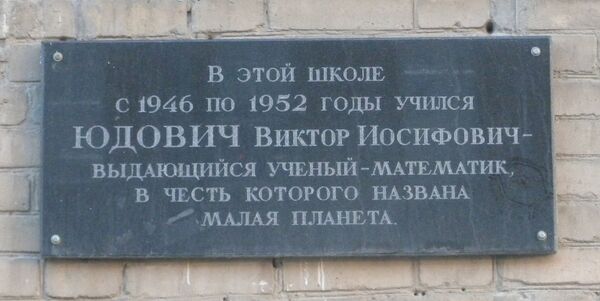 4 октября 2012 года на стене школы была установлена мемориальная доска с текстом: «В этой школе с 1946 по 1952 годы учился Юдович Виктор Иосифович — выдающийся ученый-математик, в честь которого названа малая планета»[4][5].