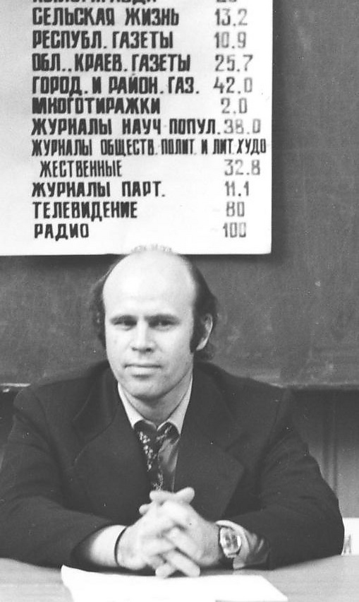В 1969 году защитил диссертацию на степень кандидата исторических наук на тему «Структура информации в периодической печати. 1964—1968 гг.».