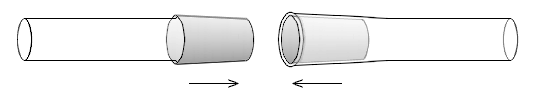 - Керн и муфта изготовлены из стекла разных сортов с разным коэффициентом теплового расширения (у муфты больше)[2].