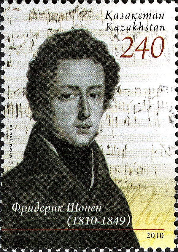 - 2 декабря 2010 года в Астане в Казахском Национальном университете искусств посольством Польши в честь Года Шопена открыт концертный зал имени Фредерика Шопена[38], а «Казпочта» выпустила памятную почтовую марку, посвящённую 200-летию Фредерика Шопена.