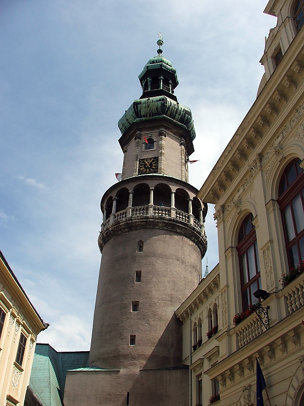 - Пожарная башня. 60-метровая башня построена в стиле неоренессанса. Первоначальная башня была построена в XI веке на римском фундаменте и с тех пор неоднократно перестраивалась. В нижней части башни расположены «Ворота верности» в память о референдуме 1921 года, где граждане города проголосовали за принадлежность Шопрона Венгрии. Ворота украшены девизом «Civitas Fidelissima» (Вернейшие граждане).