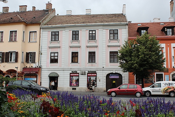 - Ансамбль центральной площади. Центральная площадь (Fő tér) окружена старинными домами, большинство из которых является памятниками архитектуры. Наиболее примечательны «дом Шторно» (ныне музей), «дом генерала» (музей современной скульптуры) и «дом Гамбринус». В центре площади стоит чумная колонна или колонна Святой Троицы (1680 год, барокко).