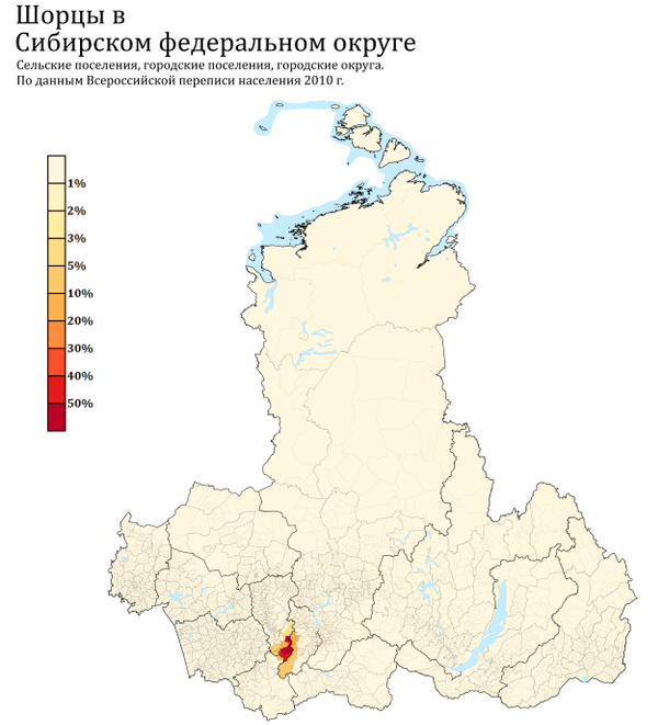 Численность шорцев в населённых пунктах (2002 г.)[6]