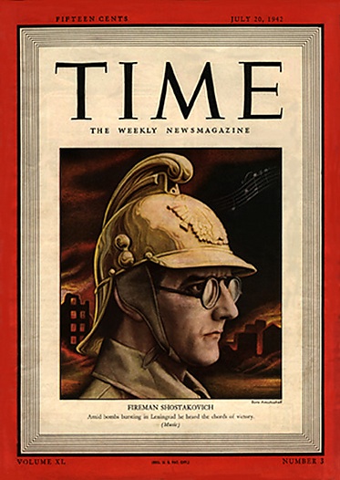 Находясь в первые месяцы войны в Ленинграде (вплоть до эвакуации в Куйбышев в октябре), начал работать над 7-й симфонией — «Ленинградской». Симфония была впервые исполнена на сцене Куйбышевского театра оперы и балета 5 марта 1942 года, а 29 марта 1942 года — в Колонном зале московского Дома Союзов. 19 июля 1942 Седьмая симфония (впервые) прозвучала в США под управлением Артуро Тосканини (радиопремьера). И наконец, 9 августа 1942 симфония была исполнена в блокадном Ленинграде. Организатором и дирижёром выступил дирижёр Большого симфонического оркестра Ленинградского радиокомитета Карл Элиасберг. Исполнение симфонии стало важным событием в жизни сражающегося города и его жителей.