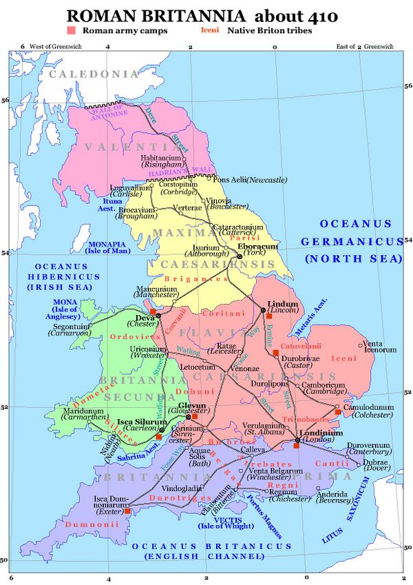 Самым прочным римским наследием может быть созданное стеной Адриана. Её линия приближается к границе между современной Шотландией и Англией, и она создала различие между северной третью и южными двумя третями острова Великобритании, которое играет роль в современной политике. Однако это, вероятно, случайное совпадение, поскольку мало что указывает на то, что его влияние играло важную роль в раннесредневековый период после падения Рима.[91]
