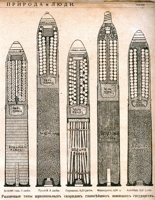 - диафрагменная шрапнель, для поражения открыто расположенных войск;
