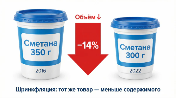 | Сметана | 2013 → 2016 → 2018 | 350 г | 330 г → 315 г |
