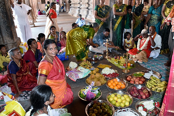 Отношения между Вишну и Лакшми демонстрирует их ежегодная ритуальная свадьба. Когда шри-вайшнав женится (выходит замуж), получает повышение на работе или случается другое благоприятное событие, его семья заказывает проведение в храме ритуальной свадьбы Вишну и Лакшми. В некоторых особенно популярных местах, таких как Тирумала, свадьба отмечается почти каждый день. Благодаря традициям Тирумалы свадьба Вишну и Лакшми проводится во всех храмах Венкатешвары в мире, то есть в Питтсбурге, Малибу, Чикаго, Атланте, Сингапуре и других местах. Ритуальную свадьбу называют «кальянотсава» (IAST: kalyāṇotsava), или свадебный праздник. Вишну берет в жёны Шри-деви и Бху-деви. Роль Вишну выполняет брахман, а свадебная церемония проводится по всем правилам настоящей свадьбы. Считается, что от союза мужского и женского аспекта Вселенной в мире происходит благоприятное событие. Свадьба бога и богини дарует всеобщее счастье и процветание. Ритуальная свадьба подчеркивает, насколько божественные силы близки человеку и играют не последнюю роль в его жизни[3].