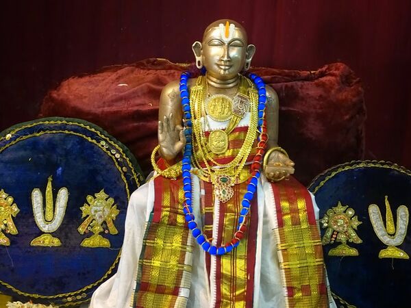 В своё время Рамануджа был настоятелем Храма Ранганатхи и провёл здесь большую часть своей жизни. Автор вишишта-адвайта-веданты полагал, что Шрирангам является самым подходящим местом на Земле для тех, кто ищет спасения души. По местному поверью останки Рамануджи хранятся в Шрирангаме в Храме Рамануджи (Sri Ramanujar Sannadhi[73]), который когда-то был мандапой. Дважды в год брахманы проводят особый ритуал, длящийся около шести часов, с омовением «останков» Рамануджи в виде его мурти[74].