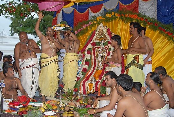 Храмовые ритуалы шри-вайшнавизма построены на одной из двух классических систем правил: Панчаратра или Вайкханаса. В обоих случаях они закреплены в священных текстах, называемых «Агамами». Вайкханаса-агамы более строгие и древние, в то время как Панчаратра-агамы — моложе и демократичнее. В агамах изложены правила проведения ритуалов, совершения молитв с указанием времени исполнения и последовательности, а также подробности проведения праздников. В большинстве шри-вайшнавских храмов брахманы следуют Панчаратра-агамам. В некоторых местах, таких как Тирумала, предпочитают Вайкханаса-агамы. Ритуалы при храмах изучаются мальчиками-брахманами, затем они проходят церемонии посвящения и получают право служить божеству согласно канону[3].