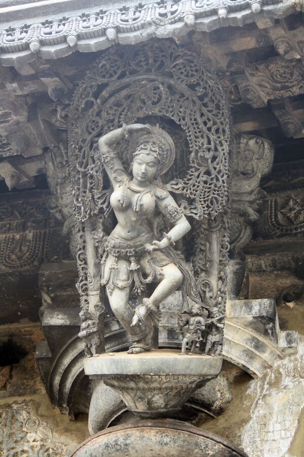 Образ Вишну, танцующего и играющего на флейте, появился задолго до гаудия-вайшнавизма и ещё раньше, чем шри-вайшнавизм распространился в Южной Индии. Впервые он упоминается в «Повести о браслете» («Шилаппадикарам»), датируемой периодом между V и VI веками. В этой повести Вишну называют разными именами и эпитетами — Майяваном, «измерившим тремя шагами Вселенную» (что отсылает читателя к истории Тривикрамы), «вспахтавшем океан» (отсылка к рассказу о молочном океане), «Богом цвета океана, прячущим в руках солнечный диск» и другими. Вишну принимает облик «спрятавшего одежды пастушек» (Кришны) и танцует в их окружении с прекрасной Наппинней. Звуками своей флейты Вишну уносит зачарованных слушателей в свой мир наслаждения, на Вайкунтху. В небесной обители Вишну с преданными бхактами устраивает нескончаемые игры (лилы), приносящие усладу. Мудрец Нарада, вечно сопровождающий Вишну, играет им на струнах вины. Вместе герои наслаждаются наивысшим блаженством, даруемым Вишну, и воспевают «Бога, восседающего на птице» (Вишну на Гаруде)[81]. В Средние века теологи гаудия-вайшнавизма составили свои версии текстов, включая новую редакцию «Бхагавата-пураны». Упоминание Вишну, принявшего ради игры облик Кришны, исчезло из описания, а среди его возлюбленных появился новый персонаж — Радха, отсутствовавшая в более ранних текстах. Таким образом, вайшнавские произведения пережили второе рождение. В гаудия-вайшнавизме на смену Вишну пришёл Кришна как самостоятельный персонаж. Индологи назвали преобразование «северной идеей о юге», подразумевая северо-индийскую версию южноиндийской любви к Вишну[82].