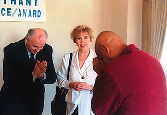 В 1988 году Шри Чинмой инициировал программу награждений «Поднимая Мир Сердцем Единства». По словам последователей, «Поднимая Мир Сердцем Единства» — это «уникальная программа, отмечающая людей, которые совершили выдающиеся достижения в какой-либо области, вдохновляя и поднимая тем самым человечество на новый уровень.» Тот же источник утверждает, что «Шри Чинмой поднял более 8300 человек у себя над головой одной рукой или двумя руками, используя специально сконструированную платформу.» В 2006 году РИА Новости сообщило, ссылаясь на пресс-службу Центра Шри Чинмоя, что «учредитель награды поднял на несколько сантиметров» российского боксёра Николая Валуева, чемпиона в супертяжёлом весе по версии WBA. Кроме того, РИА Новости сообщило, что через аналогичную процедуру в разное время прошли такие «легендарные чемпионы, как Мохаммед Али и Карл Льюис <…> олимпийские чемпионки Татьяна Лебедева, Галина Горохова, Светлана Мастеркова и Ирина Привалова.»[38][39][40][41] Программа проводилась с 1988 по 2007 год и завершилась со смертью Шри Чинмоя[42].