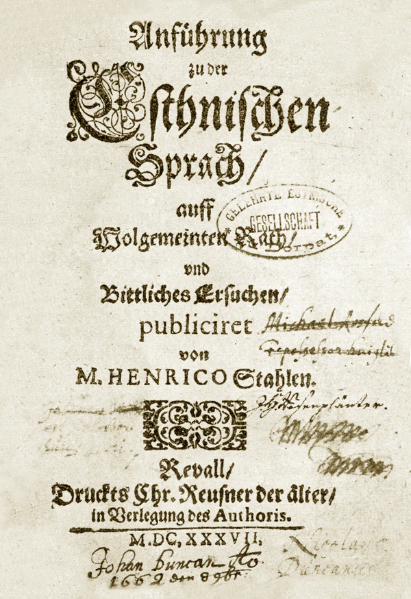 Был известен как эстонский писатель. Катехизис был первой напечатанной эстонской книгой (1632). В Кадрине в 1637 он издал первую эстонскую грамматику «Руководство по эстонскому языку» (название оригинала — «Anführung zu der Esthnischen Sprach, auff Wolgemeinten Rath, und Bittliches Ersuchen, publiciret von M. Henrico Stahlen. Revall, Druckts Chr. Reusner der älter, in Verlegung des Authoris») и издал эстонский сборник псалмов.