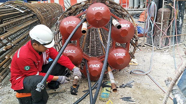 Двунаправленное испытание статической нагрузкой — это широко используемый на рынке вариант испытания постоянной нагрузкой как для свай большого, так и для малого диаметра. Основное различие между испытанием с постоянной нагрузкой с верхней нагрузкой и двунаправленным испытанием заключается в расположении домкрата. Одним из видов двунаправленного метода является метод YJACK . [7]