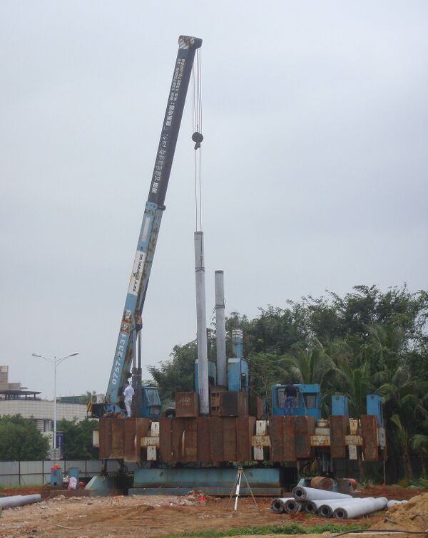 Кентледж[6] включает в себя строительство платформы, на которую помещается груз. Он давит на сваю, подвергая ее нагрузке. Датчики измеряют сопротивление, движение сваи и другие показания для определения свойств грунта.