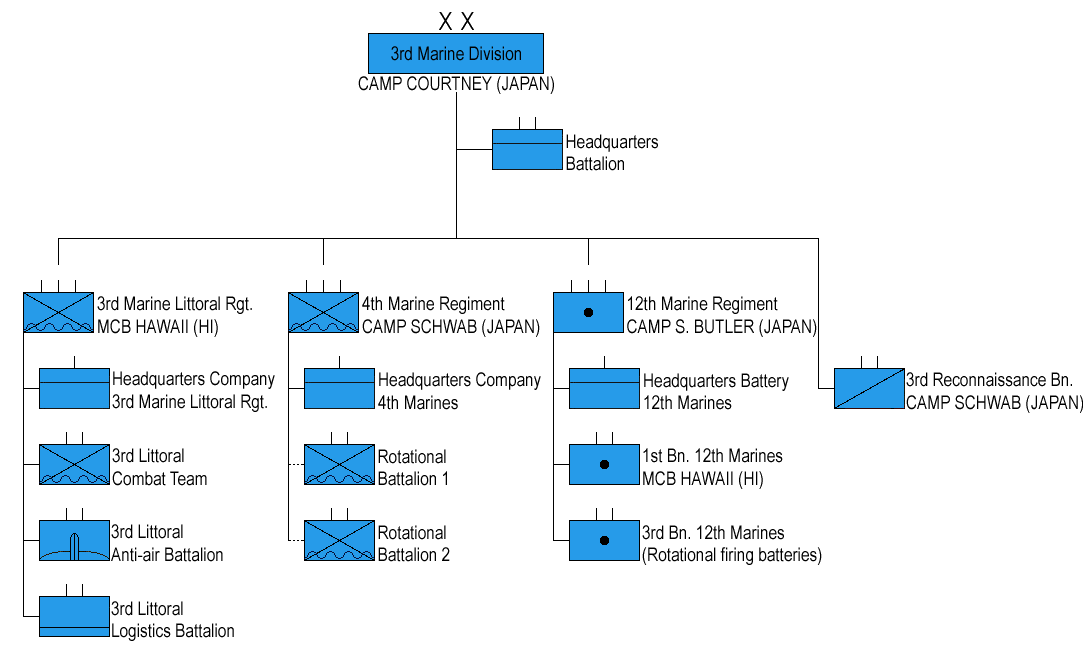 | Организационная структура командования поддержки Сухопутных войск Италии | Организационная структура 3-й дивизии морской пехоты Архивная копия от 17 июня 2015 на Wayback Machine Корпуса морской пехоты США | Учебный плакат с организационно-штатной структурой отдельного разведывательного батальона ВС РК | Организационно-штатная структура 5-й пехотной дивизии Вермахта, 1940 год. |