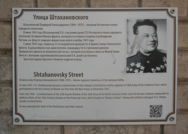 Порфирий Александрович Штахановский (1896—1973) — советский военный деятель, комиссар Ростовского стрелкового полка народного ополчения, полковник [1].
