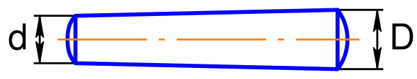 Для конических штифтов метрического стандарта принята конусность 1:50. В имперской системе машиностроительных мер в качестве стандартной принята конусность 1:48. Конический штифт надёжнее и точнее цилиндрического, так как может быть установлен внатяг вне зависимости от точности обработки деталей или их износа.