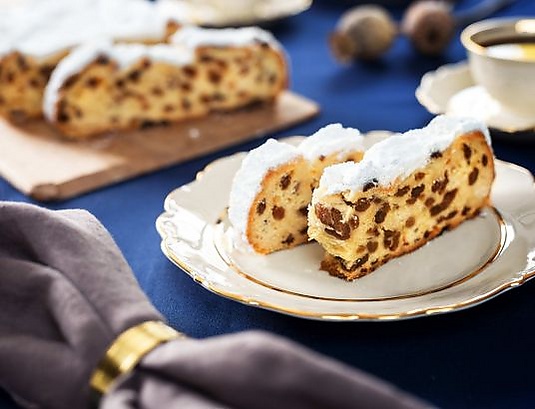 - Сливочное масло. Используется в большом количестве как в тесте, так и для обильной пропитки после выпечки. В защищённом рецепте дрезденского штоллена использование маргарина запрещено[23]. Большое количество масла делает тесто плотным и насыщенным[24].