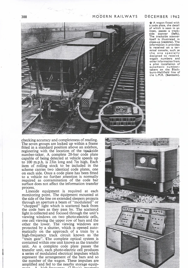Штриховой код был изобретён Норманом Джозефом Вудлендом и Бернардом Сильвером, патент на него был зарегистрирован в США в 1952 году[1]. В основе лежала расширенная версия азбуки Морзе[2]. Несмотря на получение изобретения, коммерческий успех пришёл более чем через двадцать лет. В декабре 1962 года журнал Modern Railways (Великобритания) сообщил о внедрении на железных дорогах системы автоматического распознавания штрихкодов на вагонах, движущихся со скоростью до 100 миль в час без ошибок. Одним из первых промышленных внедрений стала система KarTrak ACI, разработанная General Telephone and Electronics (GTE) и внедрённая в 1960-х по инициативе Ассоциации американских железных дорог: на вагоны крепились таблички с разноцветными полосами, кодирующими сведения о владельце, типе и номере вагона[3]. Считывание осуществлялось сканерами, расположенными вдоль рельсов[4]. Этот проект был свернут через десятилетие из-за проблем с надёжностью[3].