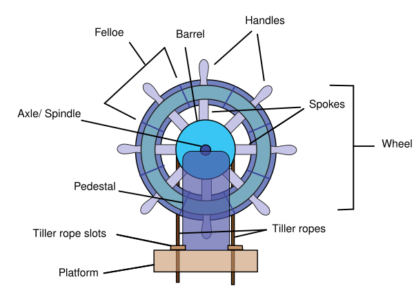 Классический штурвал судна представляет собой колесо с рукоятками, соединённое приводами различных конструкций с судовым рулём[3]. Вращение штурвала вызывает поворот пера руля (перекладку) на соответствующий угол, чем достигается поворот судна[4].