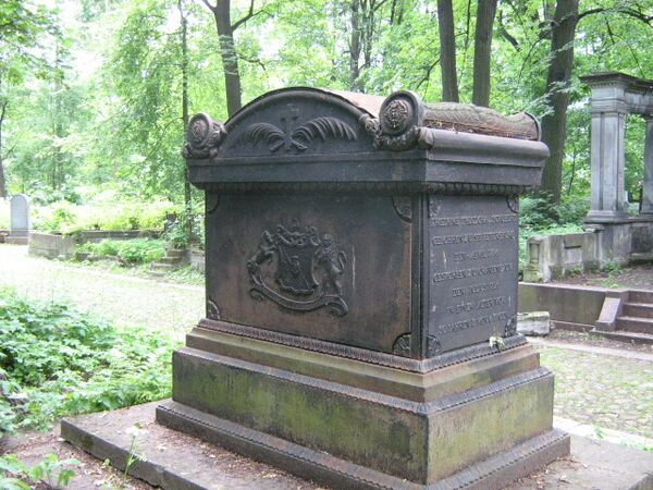Похоронен на 36-м участке Смоленского евангелического (лютеранского) кладбища в С.-Петербурге. В 1988—1989 годах саркофаг на могиле был утрачен, в 1993—1994 гг. восстановлен родственниками.