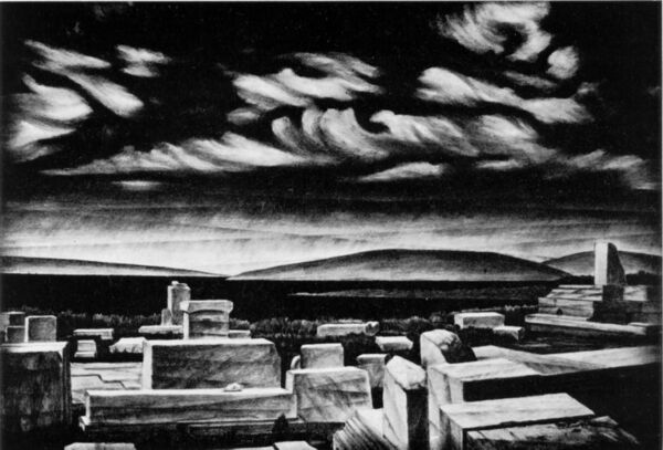 Пейзажи, созданные из неподвижных гор, вздымающихся над кажущимся мёртвым миром, но влекущим таинственной жизнью, или ещё момент: очарованный лес, дерево, порыв к небу или виток сквозь века, ритуалы, любовь — всё говорит. Человек также, в неутомимом гимне, воспевающем красоту любовного единения, совершенство тел в идеализированных формах…