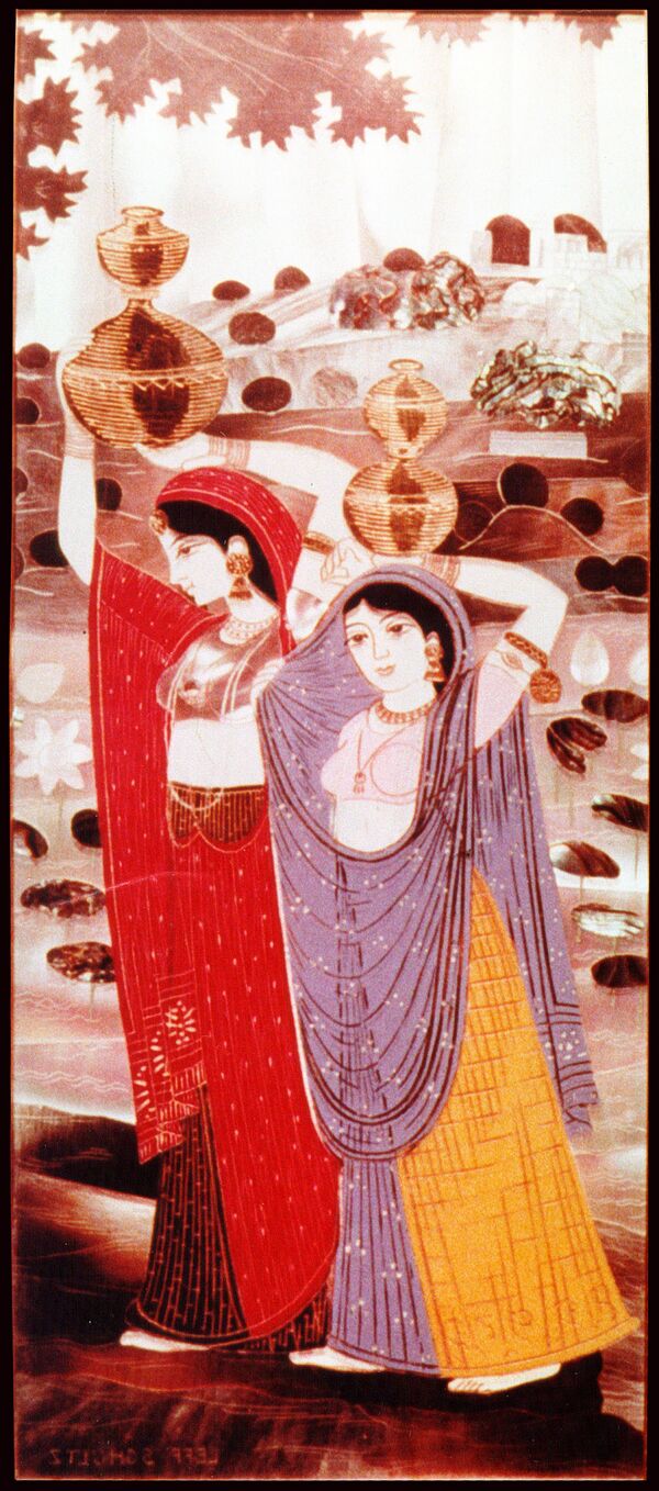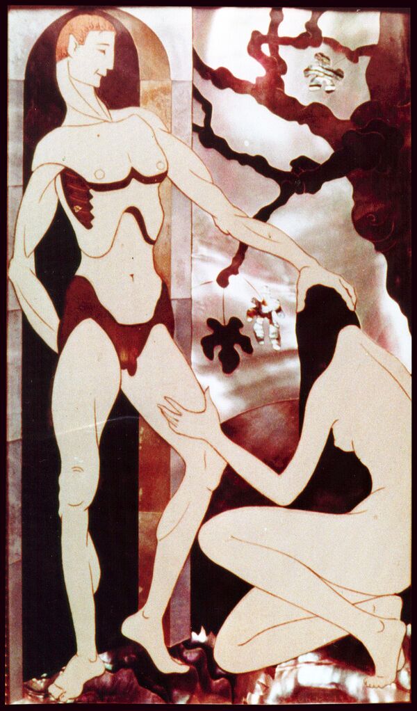 Основа последовательно покрывается одним за другим материалами: золото, слоновая кость, перламутр или коралл, разрезанные для «маркетри» и безупречно соединённые в рисунок полный неожиданных нюансов… Итальянские мадонны, цветы… Но его искусство достигает вершин наибольшей выразительности в восточных темах. Инкрустируя роскошные переплёты сказок «Тысячи и одной ночи» у Матарассо—издателя, известного своей требовательностью, личности также очень интересной, и заслуживающей репортажа, что я и сделаю когда-нибудь,— Лев создаёт пьесу по персидским мотивам: пантеры, стилизованные цветы, юноши в тюрбанах — самые разнообразные формы из благородных материалов наполняют его произведение величием мастерства и красоты…