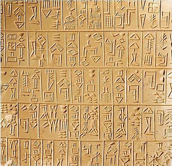 Шумеры пользовались клинописью, развившейся из пиктографии[13]. Клинописные знаки делятся на несколько категорий[14]: