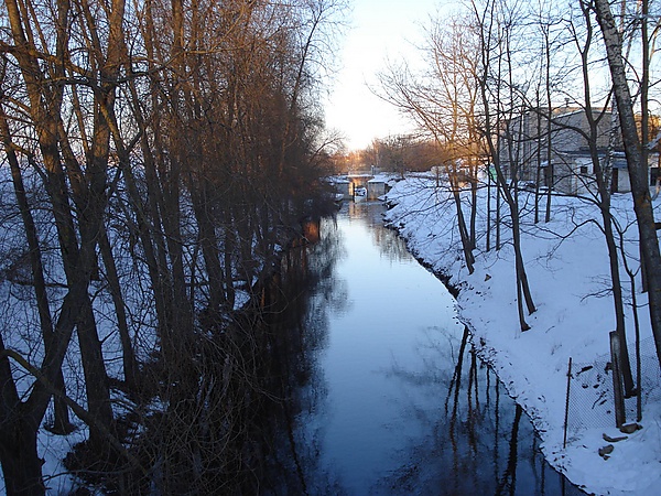 В 1841 году по окончании строительства дамбы на устьевом шлюзе был установлен чугунный обелиск с памятной доской, имеется фотография 30-х годов XX века, (после войны не сохранился/снесён). Всего речку пересекают шесть мостов, сооружено два шлюза, одна труба.