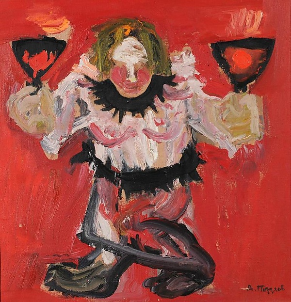 Шут. В багетной раме — картина Андрея Поздеева, написанная в 1977 году. Находится в коллекции Саратовского художественного музея имени А. Н. Радищева[1].