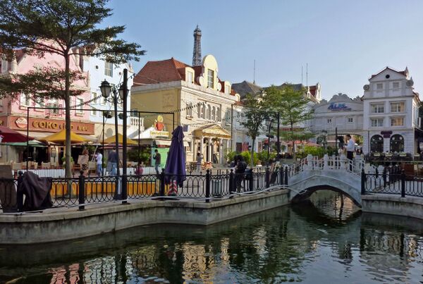 - Комплекс «Восточный город заморских китайцев» (Overseas Chinese Town East) расположен в районе Яньтянь на пляже Дамэйша и состоит из двух тематических парков — «Долина Эковенчур» и «Курортная долина чайного потока». Здесь на площади 9 км² расположены водопад, гора, лагуна, лес, каньон и сады, а также театры, где проводятся представления и шоу, древний город чая, швейцарская деревушка, пивоварни, винодельни и кафе, поле для гольфа и теннисные корты[288].