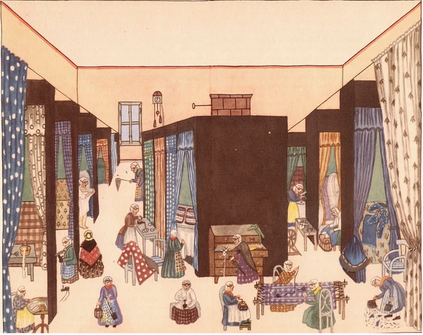 Две другие группы включают церковные интерьеры и зарисовки из домов престарелых. Они также изобилуют деталями, а в церквях художница часто изображает саму себя, окружённую толпой молящихся. Интерьеры не соотносятся с какими-либо реальными церквями, а представляют собой, скорее, некий обобщённый образ[1].