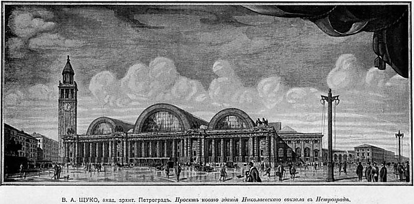 - Новое здание Николаевского вокзала в Санкт-Петербурге (1912; конкурс). Строительство было прервано с началом первой мировой войны, а старое здание сохранено[40];