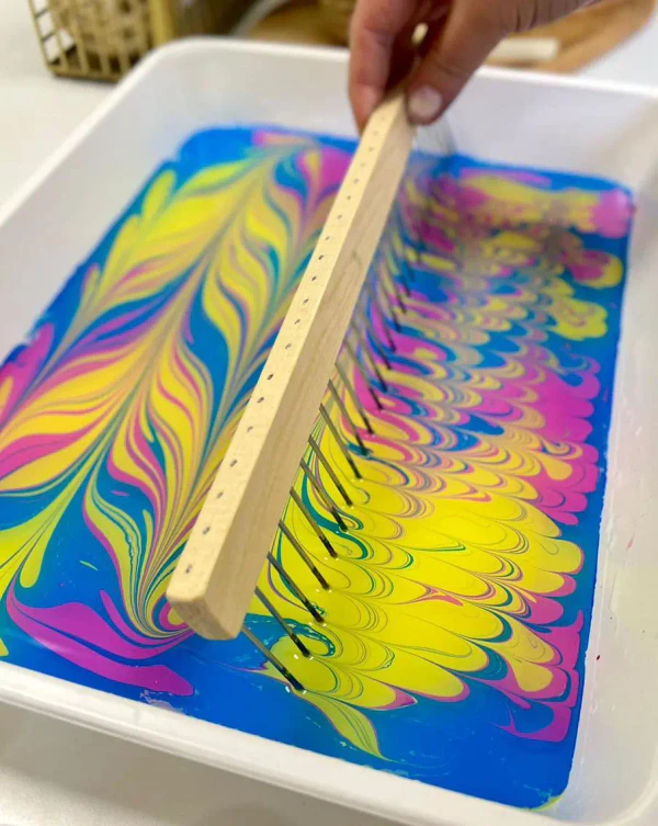 Для создания каждого вариантов рисунка требуется свой инструмент (кисти с жёсткой щетиной, шило, игла, спица, для создания «чешуйчатого» узора используют гребень). Также нужна специальная ёмкость — поддон или ванночка прямоугольной формы[1].