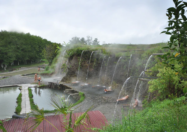 Вода, которая выходит на поверхность земли с глубины 3 км, имеет температуру 100 ℃. Пока она идёт по трубам к термальному комплексу, охлаждается до 40—45 ℃[6].