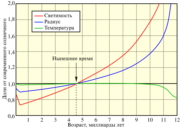 После перехода звезды на главную последовательность в ней постоянно идёт превращение водорода в гелий. Гелий накапливается в ядре, а водорода остаётся всё меньше, что замедляет скорость синтеза гелия. Поэтому ядро по мере исчерпания водорода сжимается под давлением внешних слоёв, его плотность увеличивается, и в итоге скорость реакций возрастает. Это приводит к заметному изменению характеристик звезды: к примеру, светимость Солнца, когда оно попало на главную последовательность, составляла 70 % от современной, а ко времени окончания стадии будет в 2,2 раза больше неё — то есть светимость меняется более чем в три раза[22]. В дальнейшем эти изменения приводят к настолько существенным изменениям в звезде, что она окончательно сходит с главной последовательности[33][47][56].