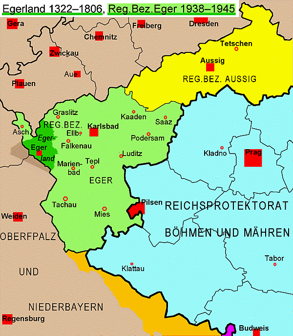 С приходом национал-социалистов к власти в Германии в 1933 году крайне возрос сепаратизм среди судетских немцев. После того, как Гитлер подтолкнул события к вооруженному противостоянию, главами Англии, Франции, Италии и Германии в 1938 году было подписано Мюнхенское соглашение, результатом которого была аннексия Судетской области, включая Эгерланд, нацистской Германией.