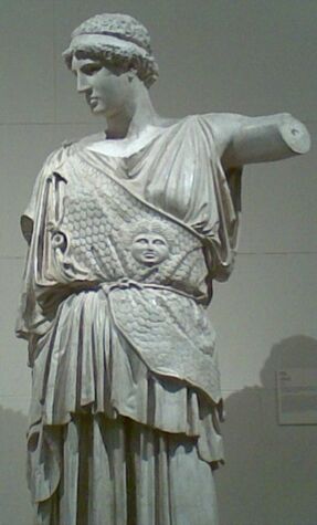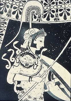 По поверьям древних греков, дочь Зевса Афина носила эгиду в качестве части своего одеяния, прикрепив к ней изображение головы горгоны Медузы (на илл.)[1].
