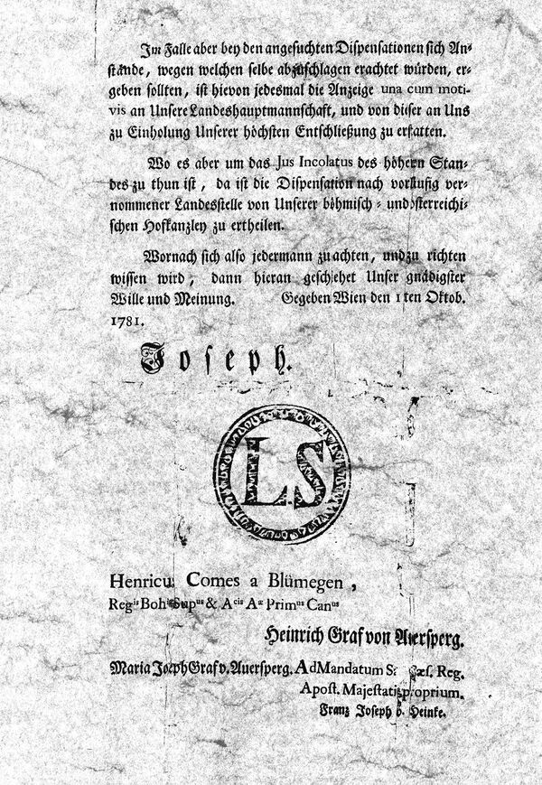 - Toleranzpatent vom 13. Oktober 1781 im Wortlaut