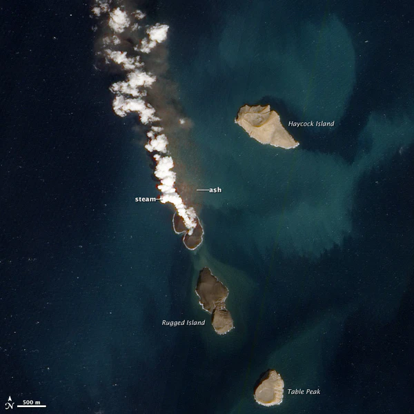 В декабре 2011 года произошло извержение вулкана между островами Руггед (Неровный) и Хейкок. По рассказам рыбаков, потоки лавы выбрасывались из моря на высоту до 30 метров. В результате извержения в гряде появился новый остров[3][4].