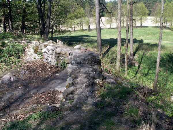 На расстоянии свыше километра от костёла на шоссе, соединяющем с Шальниниками, находятся поросшие лесом и кустарником развалины замка, а в них — остатки фундамента башни оптического телеграфа Санкт-Петербург — Варшава, действовавшего в первой половине XIX века (башня оптического телеграфа сооружена в 1830 году[4]). Благодаря последнему обстоятельству местные жители до сих пор называют остатки замка «Маяком».