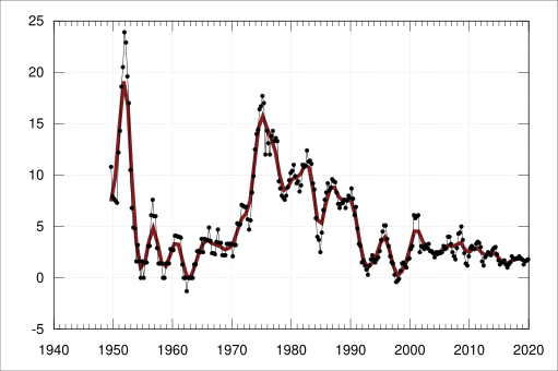 Инфляция, как правило, составляет 2—3 %, а основная процентная ставка 1,5—5 %. Сектор услуг в экономике, включая туризм, образование и финансовое обслуживание, составляет 70 % от ВВП[23]. Австралийский национальный университет в Канберре поддерживает проект прогнозирования процентной ставки для Австралийской экономики, которая вычисляется по статистическим данным так называемыми «теневыми» членами преподавательского состава АНУ.[24]