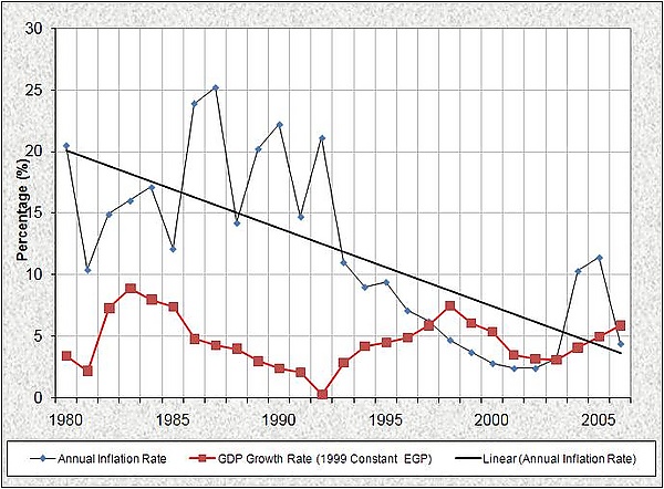 - Проблемная политика правительства. Каир последовательно отдает предпочтение городским районам в ущерб сельских, что приводит к уменьшению сельскохозяйственных исследований, отсутствию финансовой поддержки, монополии частного сектора, нелепым субсидиям, контрабанде, коррупции и чёрному рынку. Фермеры страдают от нехватки семян, удобрений и пестицидов — дорогих, но низкокачественных. Наиболее пагубное влияние оказало снижение количества обрабатываемых земель из-за соучастия государства в неограниченной и незаконной жилой застройке.
