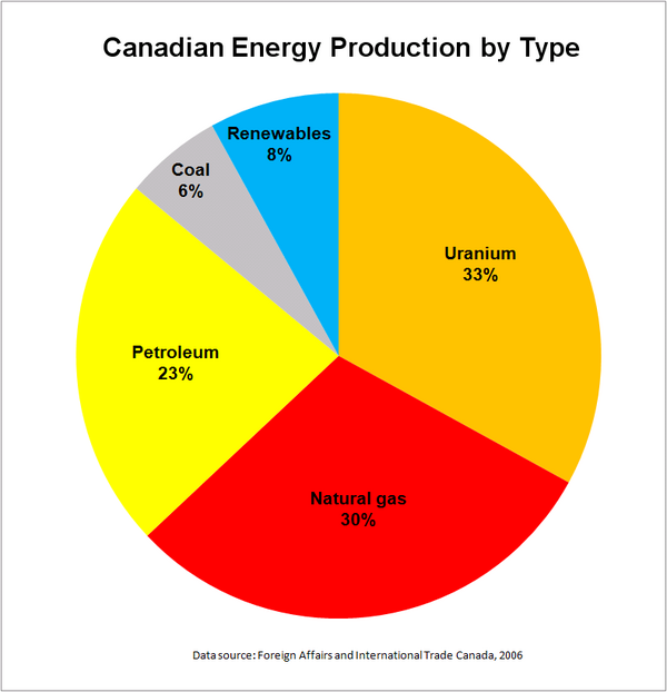 Канада — один из крупнейших в мире потребителей энергии на душу населения, в первую очередь, из-за своей индустриализированной экономики и своего сурового климата зимой. Канада обладает крупными источниками возобновляемой энергии, такими как многочисленные крупные реки и озёра, сильные постоянные ветра в центральной и восточной областях, самые высокие морские приливы в заливе Фанди в Новой Шотландии. Страна выделяется также и по невозобновляемым энергетическим запасам. Она владеет крупнейшими в мире запасами урана в Саскачеване и крупными запасами нефти и природного газа в Альберте. Последняя провинция также располагает крупнейшими в мире запасами битумного песка.